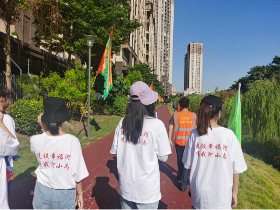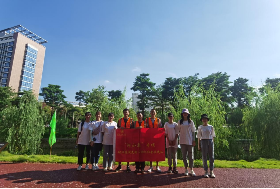 ▲9月5日,“助力建设美好三湘江社会实践队”在闽师大校内揽城绿道进行巡河活动