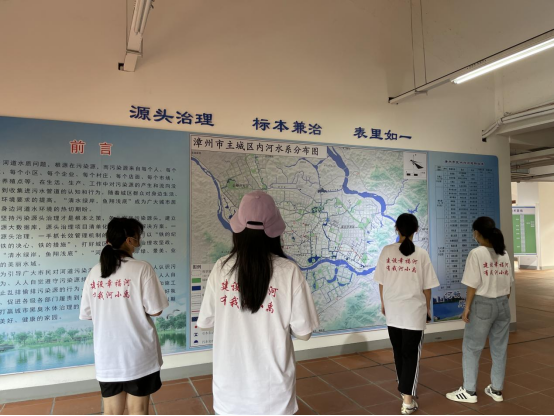 “河小禹”实践队一同组织前往漳州市内河水污染治理互动展示馆,并采用自行参馆与解说员讲解相结合的形式,了解漳州市芗城区河流的管理治理、监督体系、水法规定及漳州市区黑臭水体正向排查、逆向溯源工作。