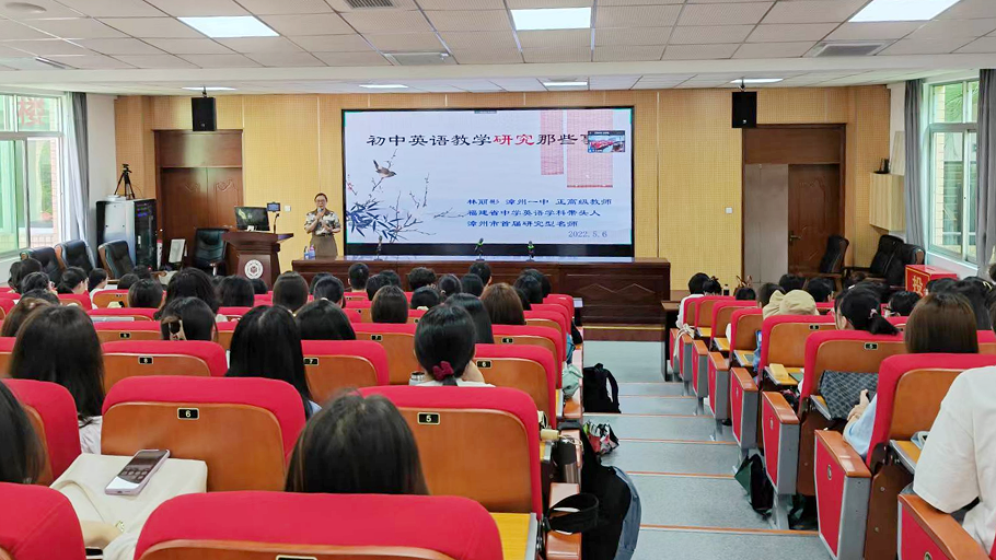 2022年5月6日下午3时30分,“初中英语教学研究——以反思性教学为例”的主题讲座以线上线下结合的方式同步召开。参与此次会议的有我院英语系教学法专任老师,2018级、2019级英语师范生以及2020、2021级英语教育硕士研究生。讲座由漳州一中正高级教师、福建省中学英语学科带头人林丽彬老师做主题发言。我院英语系系主任、专业负责人陈彩虹博士主持了本次会议。