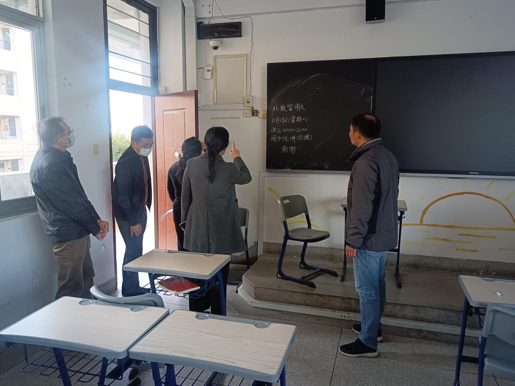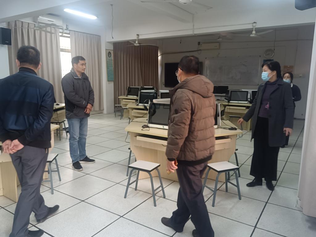 为加强学校寒假期间的安全管理,确保校园安全稳定,根据安全工作计划安排,2022年12月21日,yl88858永利官网吴晓峰书记和吴玉玲院长带领学院班子成员以及相关科室负责人,组成安全工作检查小组,按照“对照排查、覆盖全面、不留死角、扫除隐患”的要求对yl88858永利官网的教室、办公室、语音室等各个地方进行一次全面的安全大检查。