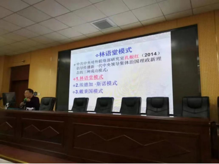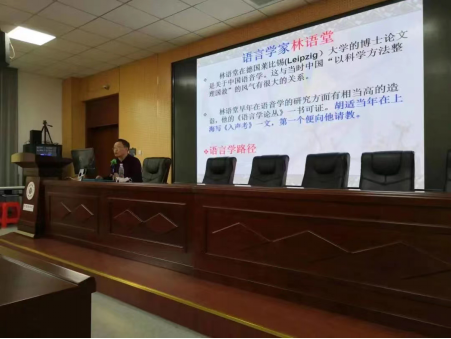 讲座中,冯教授就林语堂研究中的问题和出入进行了深入讲解,冯教授以林语堂的多重身份为切入点,为广大师生未来的学习和研究提供了一些新的视角。最后,冯教授对“创译一体”这一概念进行了解释,并提出:一切外语写作都是翻译;翻译就是换一种表达方式;翻译的尽头是创作。
