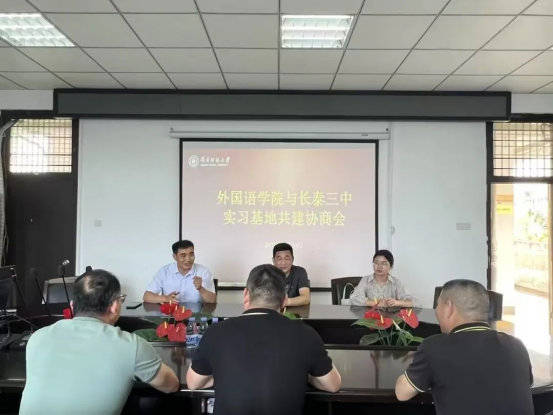 5月24日上午10时,长泰三中校长林惠海、总务处副主任林美林及林毅贤一行来我院协商共建实习实践基地事宜,参与本次协商会的有yl88858永利官网副书记朱兆军,副院长王羽青以及英语系教研室主任李祯。