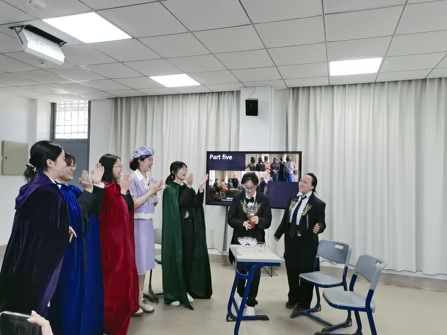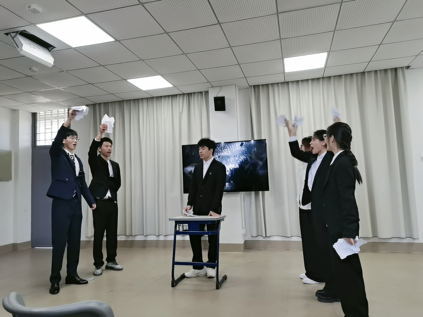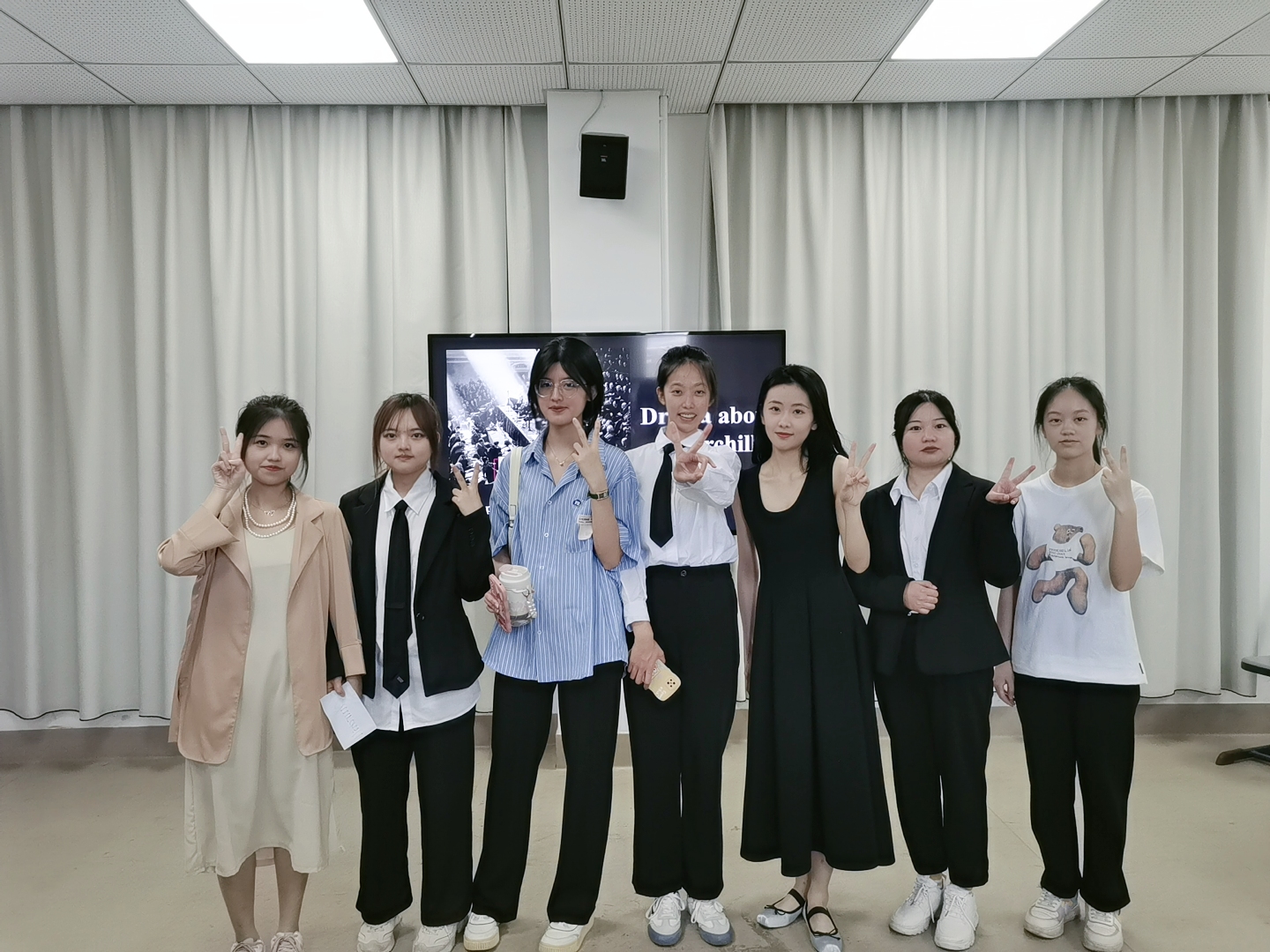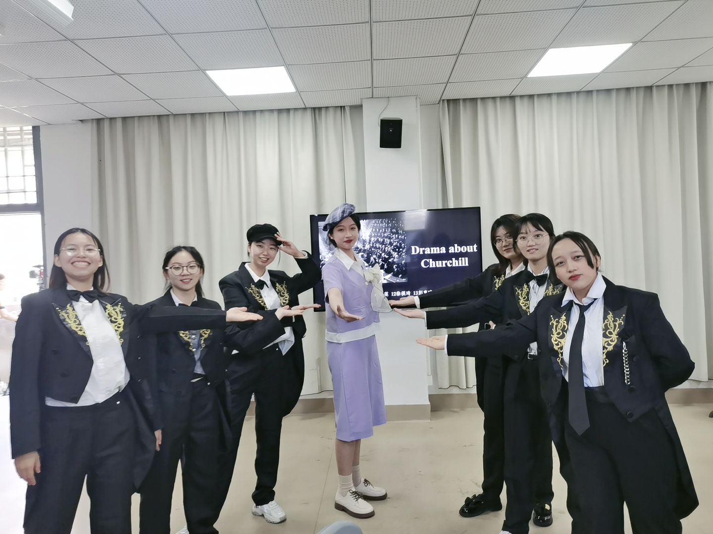 5月31日上午,2020级英语师范本科2班在综北505举行了一场以英国首相丘吉尔的一生为主题的英语戏剧表演。任课老师在引导学生对高级英语II 第五单元内容(My Adventures with a Paint Brush,丘吉尔著)进行文本分析与欣赏之后,要求同学们通过戏剧表演的形式深度理解和亲身演绎、体会丘吉尔永不言弃的坚毅品质及其在不同人生阶段所展示的处世智慧,促进学生价值观的塑造,培养学生的思维品质。此次活动的目的是实现从课内学习到课外学习的延申,丰富同学们的课余生活,展现同学们朝气蓬勃、激情澎湃且富有创造力的一面。