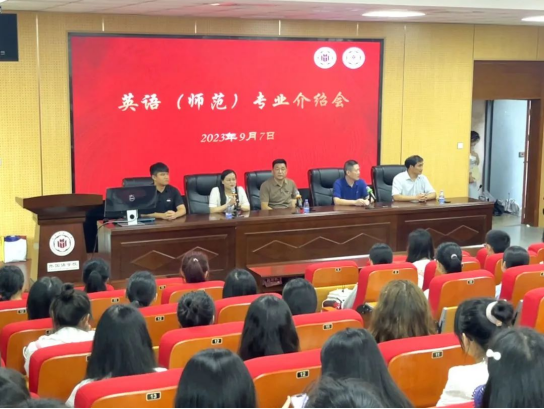 英语系主任陈彩虹老师介绍了我校英语师范专业的人才培养模式,重点介绍了英语师范专业的培养目标、毕业要求和课程体系,并鼓励同学们认真读书、勤于思考、勇于实践。