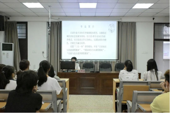 日语系主任庄苹老师介绍了日语专业的交叉融合培养模式,阐述了学习日语需要具备的各项能力,并展示了学院的师资队伍。最后,陈述了日语专业考试。