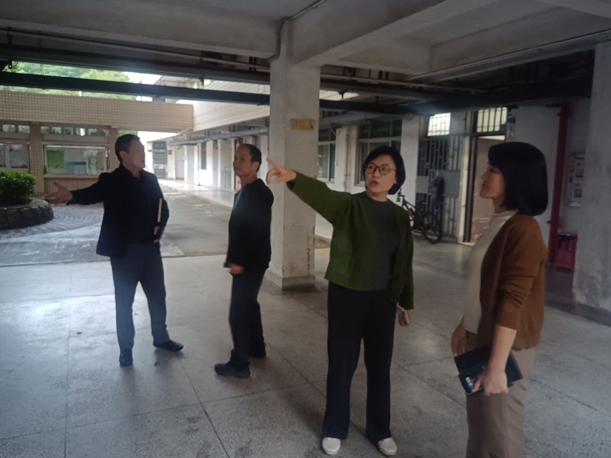 蔡月桂处长一行实地进行查看,对学院提出的问题逐一进行讨论交流,并根据实际情况提出具体的修缮方案和建议。下一步,基建处将按调研情况进一步进行交流,完善实施方案继续,做好项目后续工作对接,稳妥推进实施。