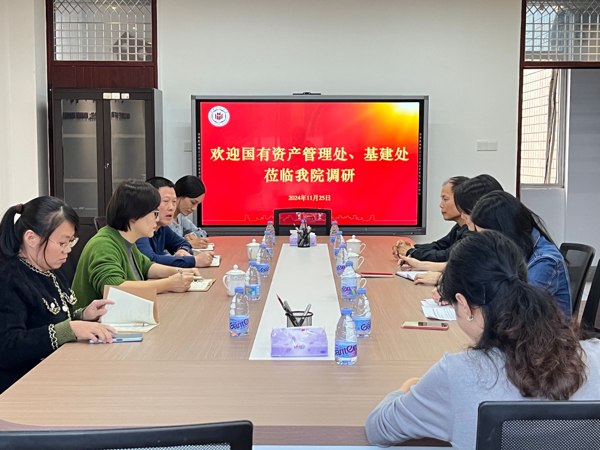 陈慧燕书记对蔡月桂处长一行莅临学院交流指导表示感谢,简要介绍学院有关物资采购及管理相关工作,交流了部分办公室、教室漏水、学生宿舍修缮、宣传栏改造等方面存在的困难与问题。