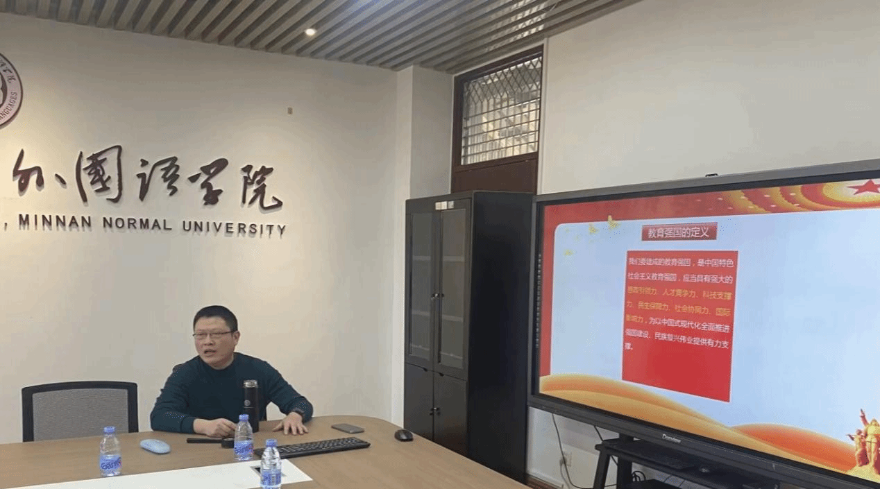 随后,肖副院长结合学院实际,围绕课程思政、人才培养、社会服务等方面作重点阐述。他强调,学院应大力实施课程思政建设,加强“理解当代中国”系列课程建设,培育课程思政优秀成果;充分发挥中华优秀传统文化的育人功能,努力提高学生“讲好中国故事、传播中国声音的国际传播能力;加强政、校、企合作,强化高校的社会服务功能;努力构建“闽南文化翻译”、“外语 +国际金融”、“外语 +跨境电子商务”、“闽南文化+教师教育”课程群,助力闽南文化出海。