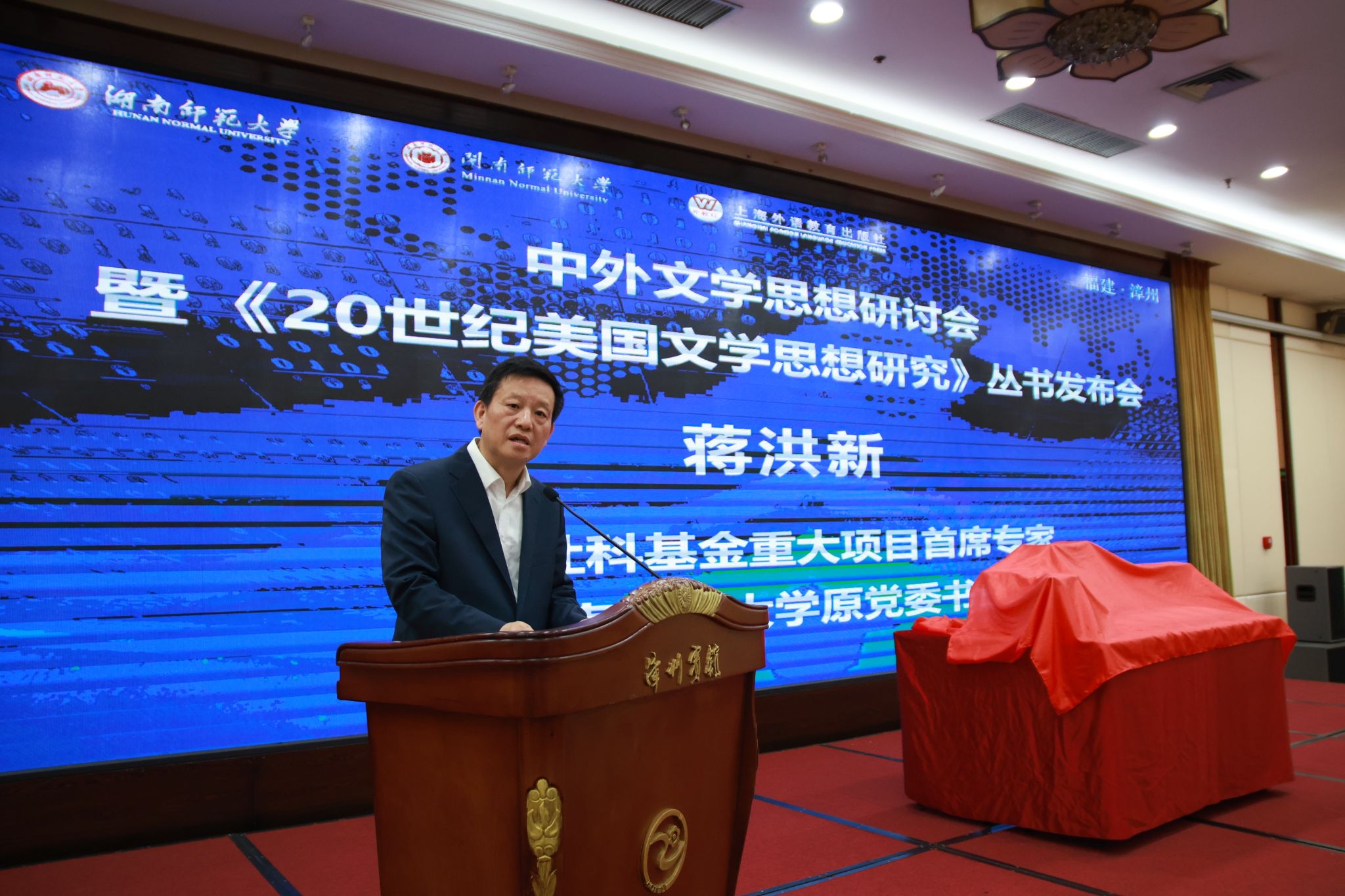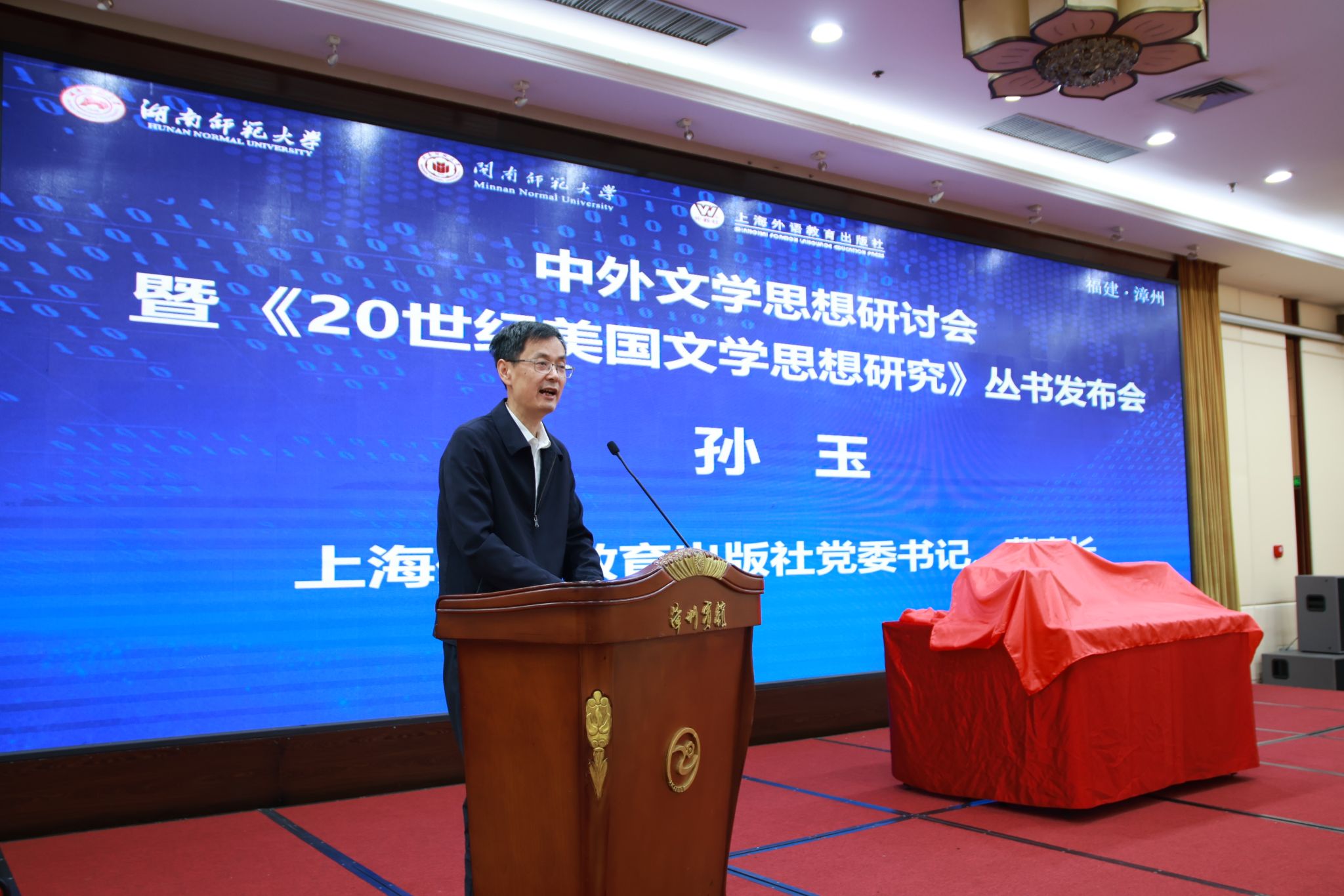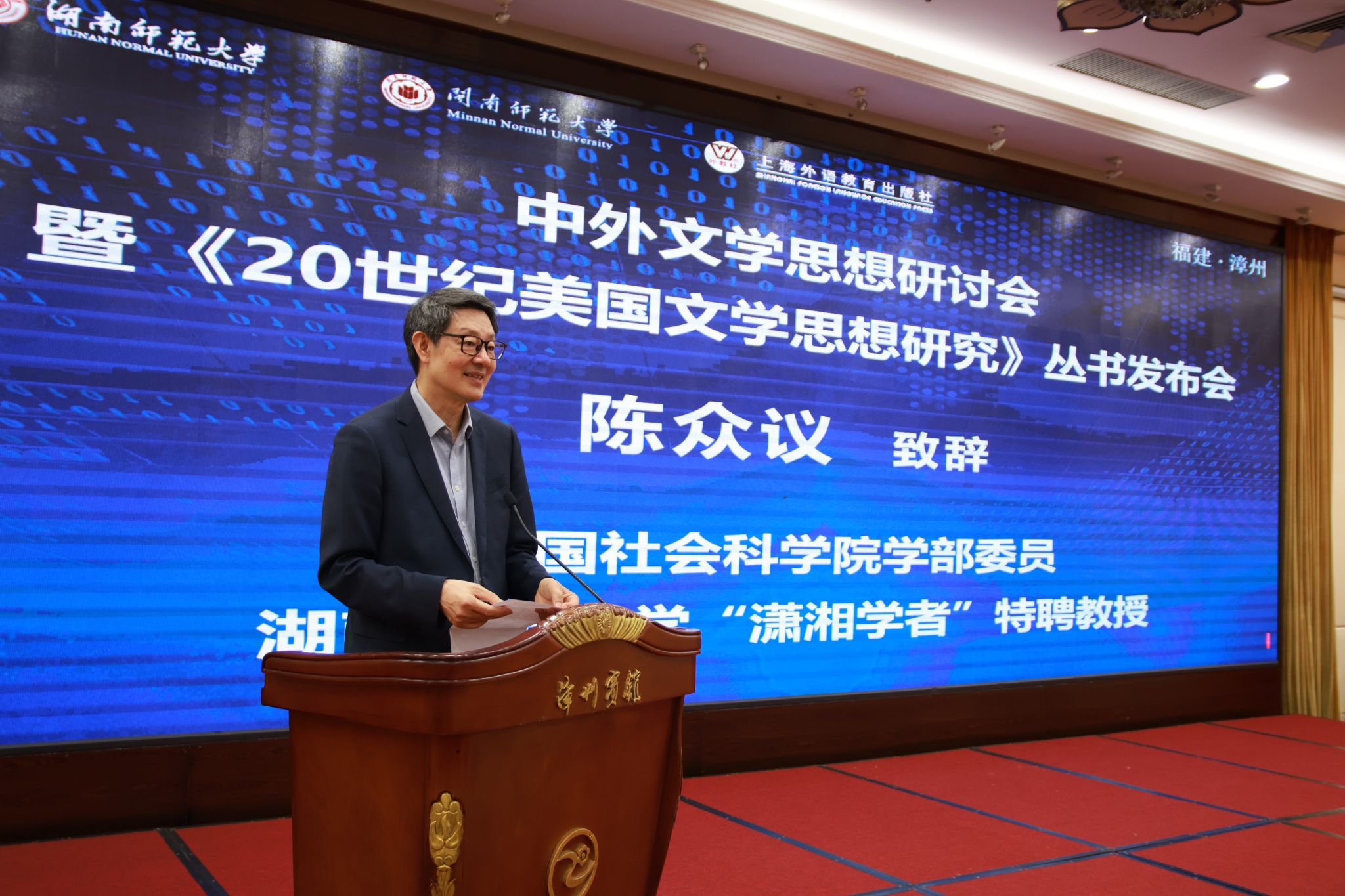 闽南师范大学党委副书记、校长张龙海,中国社科院学部委员、湖南师范大学“潇湘学者”特聘教授陈众议,国家社科基金重大项目首席专家、湖南师范大学原党委书记蒋洪新,上海外语教育出版社党委书记、董事长孙玉等出席会议。会议开幕式由闽南师范大学党委常委、副校长张宏怡主持。