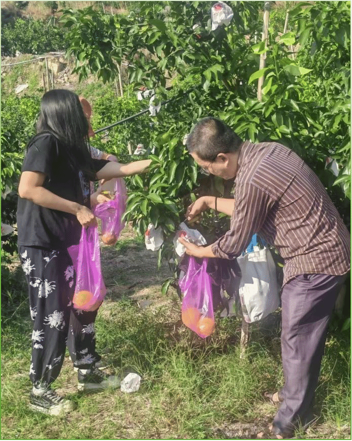 随后,教职工一行来到枋洋镇美宫洋头村开展果园农事体验活动。在农户的专业指导下,大家不仅了解了果树栽培技术、水果采摘技巧等知识,还严格遵守农户讲解的操作规则,全身心投入活动,充分体验到了农事劳动的乐趣与收获的喜悦。